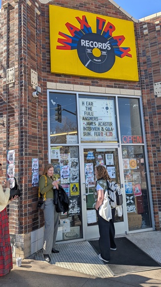 Wax Trax was only a mile from our hotel, but the time of the event would make it extremely difficult for us to catch our flight home. Still, out of curiosity we walked over to the shop in the morning to check it out. It was three and a half hours before the event and there were already people lining up to see him. I’ve no idea how it went because it is a pretty small record shop, and if even a 10th of the people at the show last night stopped by, never mind the announcement on national TV, the place would be completely overrun.